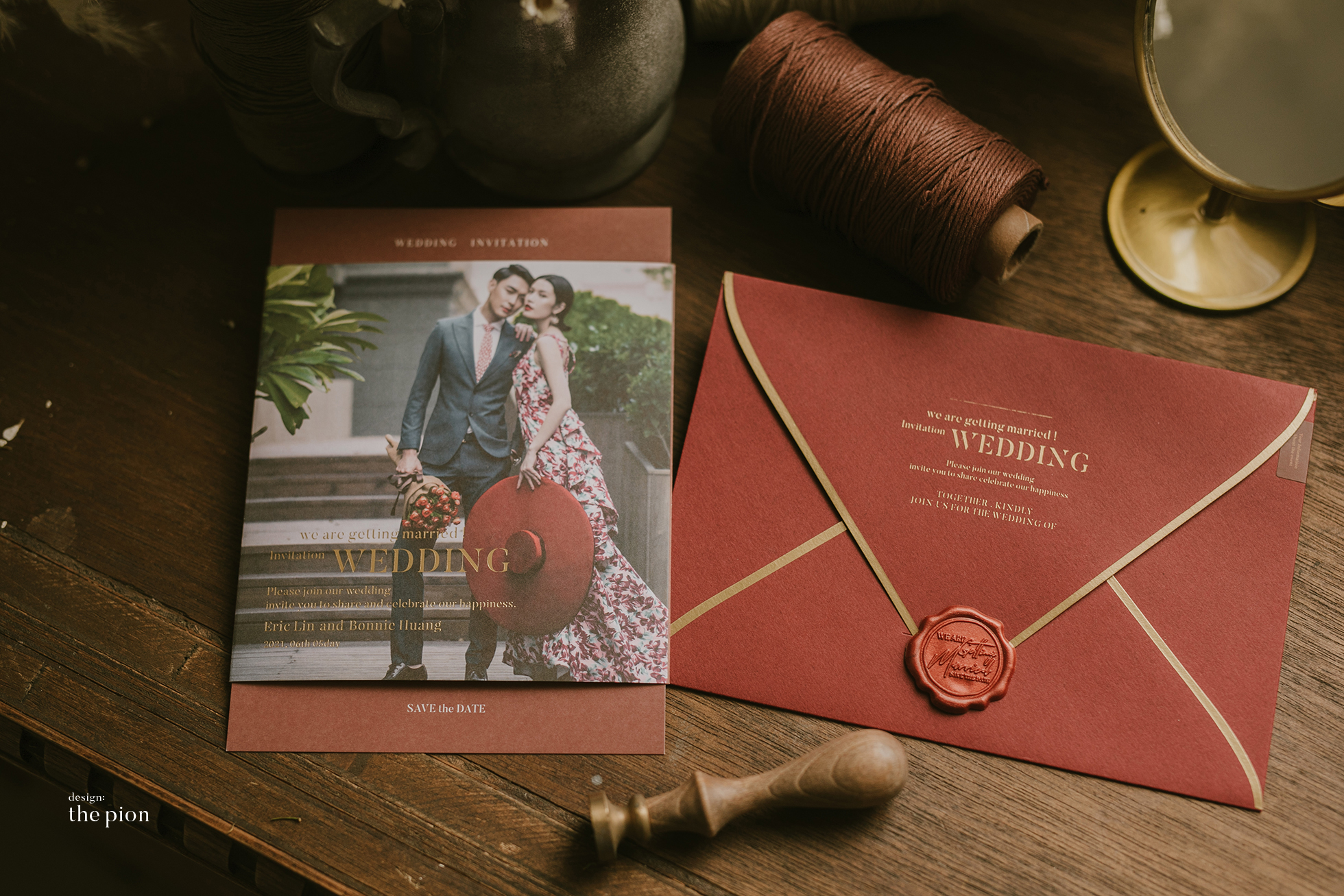 Content 內容物/ 單張明信片 + 照片封條 + 金邊信封 + 封蠟貼紙
